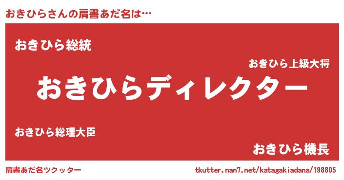 | ヒーロー風カッコイイあだ名 | 『最強戦士オキヒラ』『ネオオキヒラ』 |