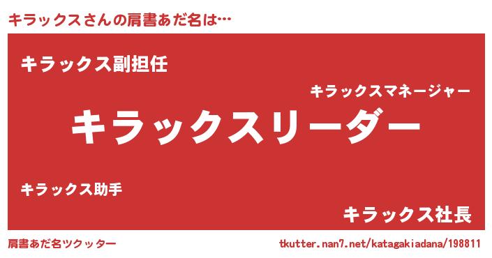 | 意味不明あだ名 | 『とにかく怪しいキラックス』 |