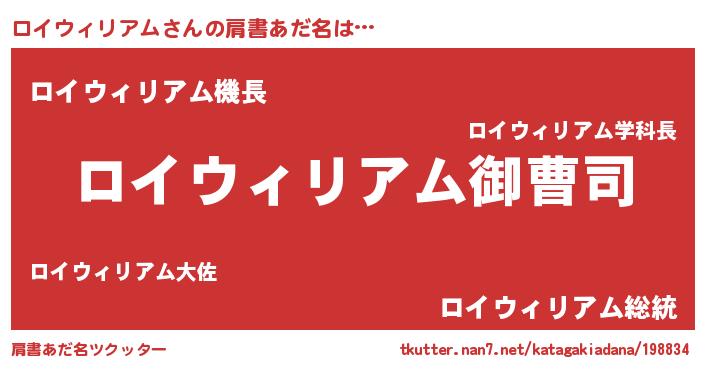 | 男性向けラノベタイトル風あだ名 | 『ロイウィリアムアートオンライン』 |