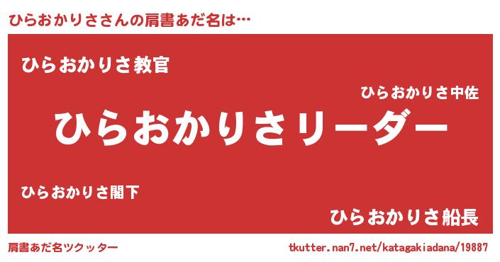 | ポケモン風あだ名 | 『ヒヒラオカリサ』『ヒーライ』 |