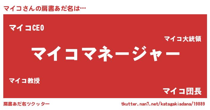 | 欧米人風あだ名 | 『アンジェラ・マイコ』『マイケルマイコ』 |