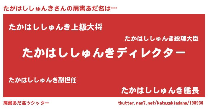 | 男性向けラノベタイトル風あだ名 | 『たかはししゅんきに滅ぼされるだけの簡単なお仕事です』 |