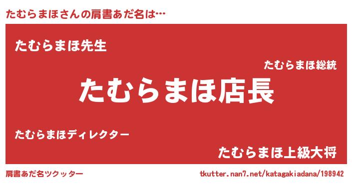| ヒーロー風カッコイイあだ名 | 『スーパータムラマホ』『ネオタムラマホ』 |