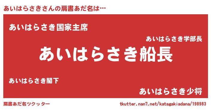 | ヒーロー風カッコイイあだ名 | 『ウルトラあいはらさきマン』 |