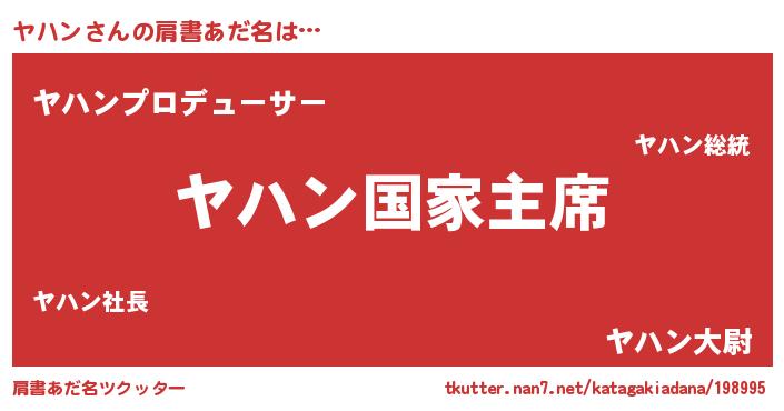 | 意味不明あだ名 | 『ヤハンフォーエバー』『自称ヤハン』 |