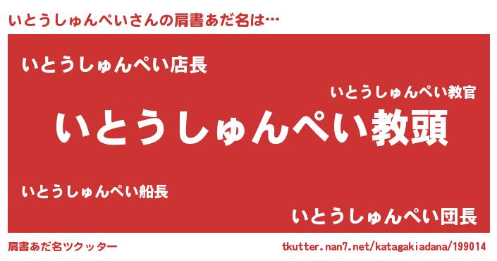 | ヘコむあだ名 | 『いとうしゅんぺい(笑)』『いとにゅー』 |