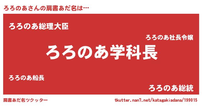 | 欧米人風あだ名 | 『ダニエルろろのあ』『マイケルろろのあ』 |