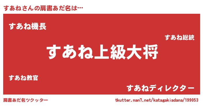 | 男性向けラノベタイトル風あだ名 | 『スアネスレイヤー』『緋弾のスアネ』 |