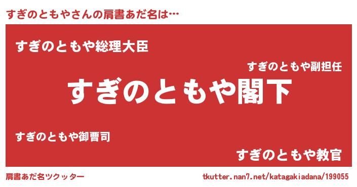 | 意味不明あだ名 | 『自称すぎのともや』 |