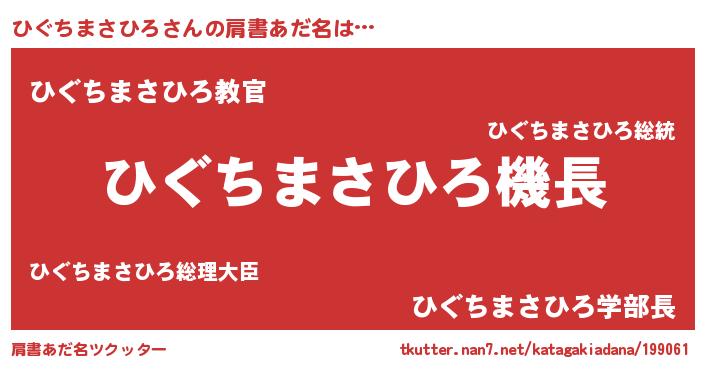 | 意味不明あだ名 | 『住所不定無職ひぐちまさひろ(79歳)』 |