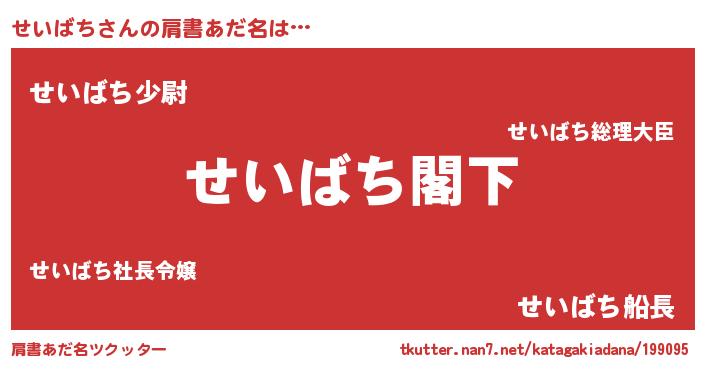 | 意味不明あだ名 | 『自称せいばち』『めかぶ科せいばち属』 |