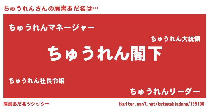 | 女子向けラノベタイトル風あだ名 | 『ちゅうれんなんてお断りですっ。』 |
