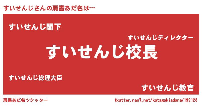 | 胡散臭い通販商品みたいなあだ名 | 『来世でも幸せになれる健康食品…その名も「すいせんじ」』 |