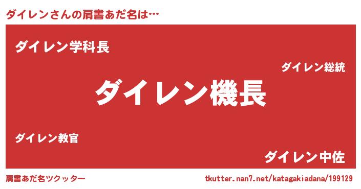 | 男性向けラノベタイトル風あだ名 | 『緋弾のダイレン』『魔弾の王とダイレン』 |