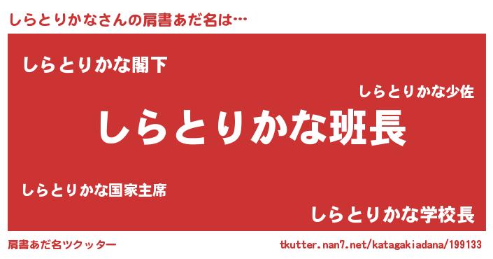 | 意味不明あだ名 | 『とにかく怪しいしらとりかな』 |