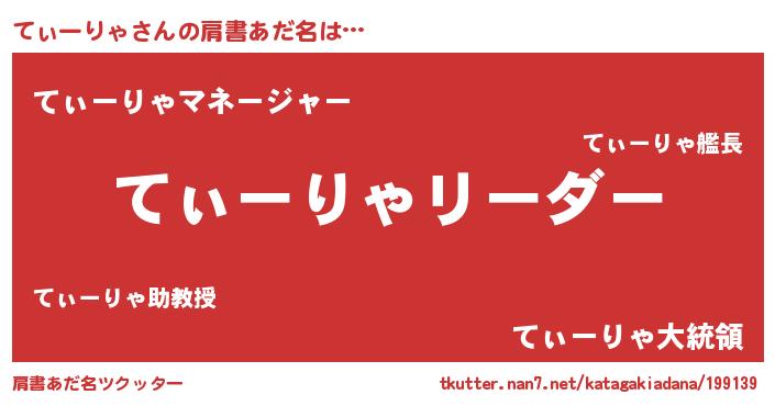 | 男性向けラノベタイトル風あだ名 | 『てぃーりゃの嫁は女の子じゃないと思った?』 |