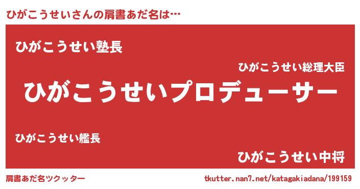 | ヒーロー風カッコイイあだ名 | 『黄金騎士ヒガ』『スーパーヒガコウセイ』 |