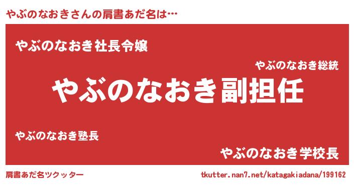 | 男性向けラノベタイトル風あだ名 | 『誰もが恐れるあのやぶのなおきが、ぼくの専属メイドになるようです。』 |
