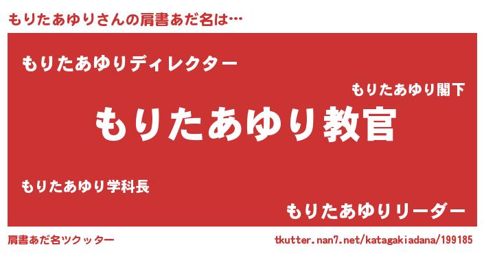 | 男性向けラノベタイトル風あだ名 | 『この素晴らしい世界にもりたあゆりを!』 |
