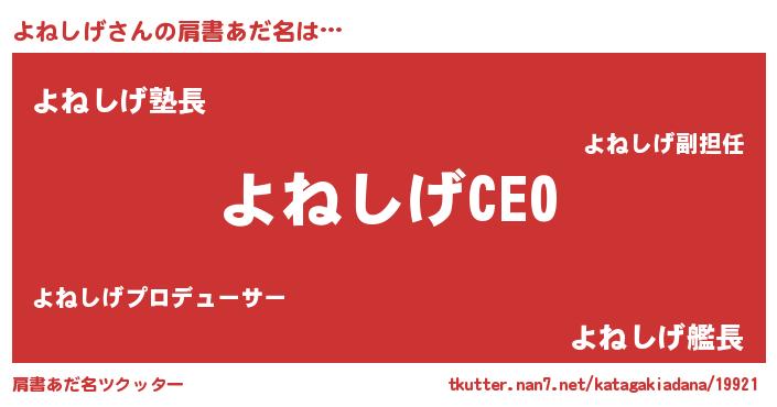 | ポケモン風あだ名 | 『ヨネチュウ』『ヒヨネシゲ』 |