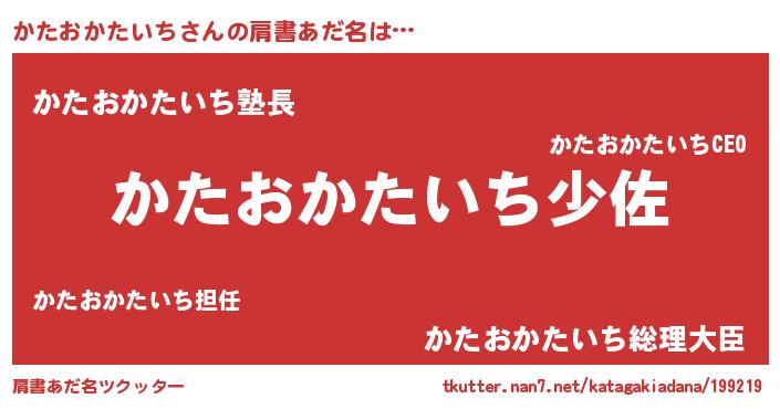 | 胡散臭い通販商品みたいなあだ名 | 『信頼と実績のサプリメント…その名も「かたおかたいち」』 |