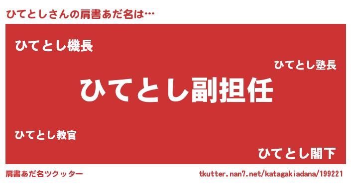 | 胡散臭い通販商品みたいなあだ名 | 『絶対に幸福をもたらす水素水…その名も「ひてとし」』 |