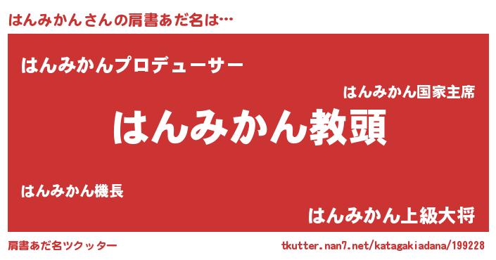 | 男性向けラノベタイトル風あだ名 | 『はんみかんという概念が存在しない退屈な世界 』 |