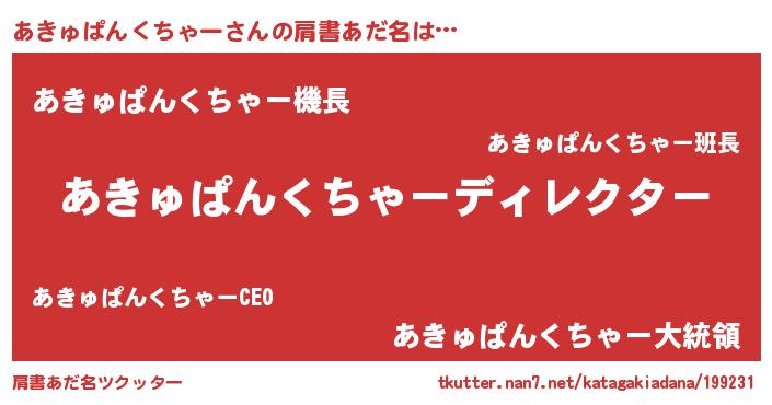| 意味不明あだ名 | 『あきゅぱんくちゃーフォーエバー』 |