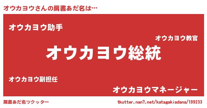 | 意味不明あだ名 | 『自称オウカヨウ』『永久保存オウカヨウ』 |