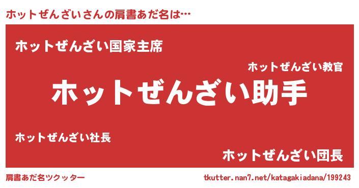 | 欧米人風あだ名 | 『ダニエルホットぜんざい』 |