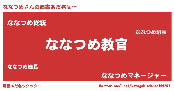 | ヘコむあだ名 | 『ななぷりん』『ななつめ(苦笑)』 |
