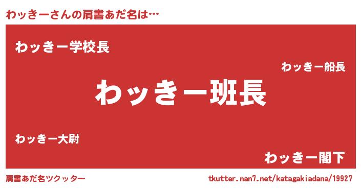 | 男性向けラノベタイトル風あだ名 | 『ダンジョンにわッきーを求めるのは間違っているだろうか』 |