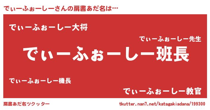 | 意味不明あだ名 | 『とにかく怪しいでぃーふぉーしー』 |