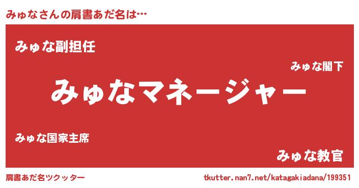 | 意味不明あだ名 | 『永久保存みゅな』『自称みゅな』 |