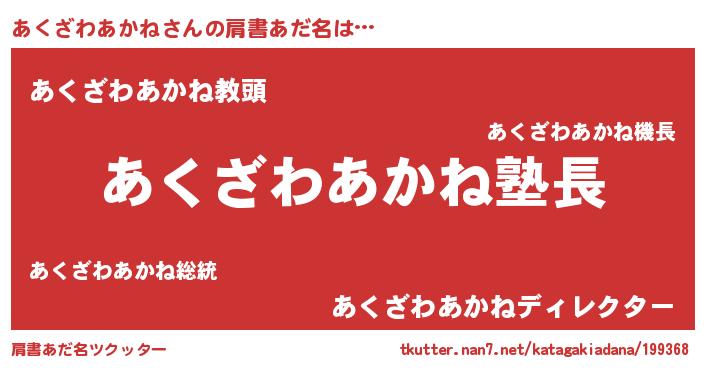 | 意味不明あだ名 | 『とにかく怪しいあくざわあかね』 |