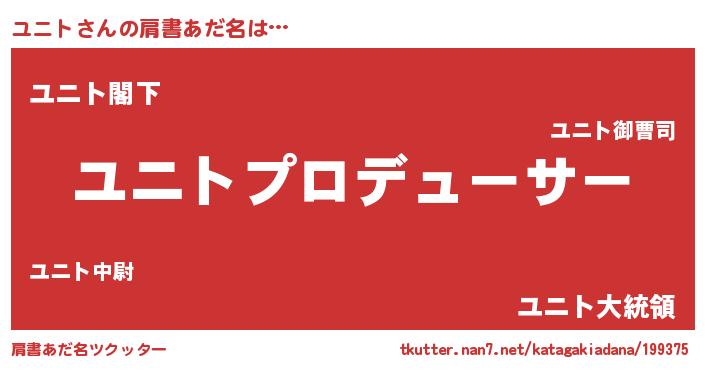 | 男性向けラノベタイトル風あだ名 | 『ユニトに滅ぼされるだけの簡単なお仕事です』 |