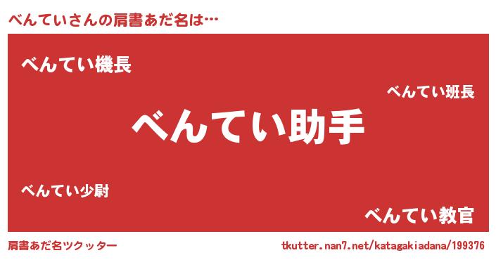 | ヒーロー風カッコイイあだ名 | 『慈愛の使者べんてい』『仮面ベンダー』 |