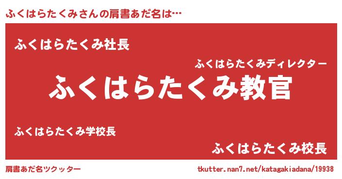 | 意味不明あだ名 | 『住所不定無職ふくはらたくみ(39歳)』 |
