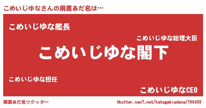 | 男性向けラノベタイトル風あだ名 | 『Re:こめいじゆなから始める異世界生活』 |