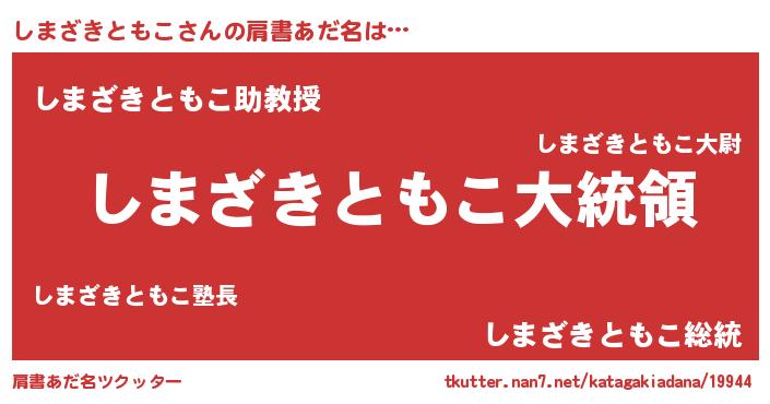 | 女子向けラノベタイトル風あだ名 | 『しまざきともこの雑貨屋さん』 |