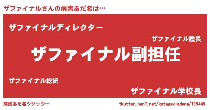 | 女子向けラノベタイトル風あだ名 | 『ザファイナルの契約王妃』 |