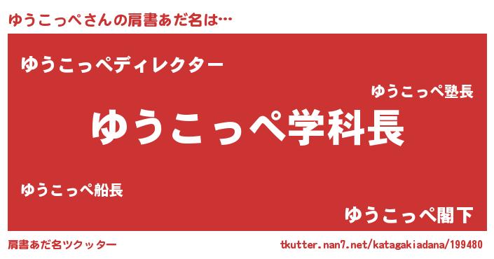 | 男性向けラノベタイトル風あだ名 | 『ノーゲーム・ノーユウコッペ』 |