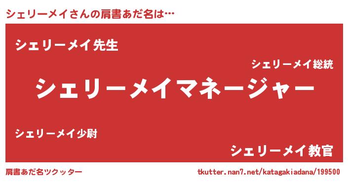 | 意味不明あだ名 | 『永久保存シェリーメイ』 |