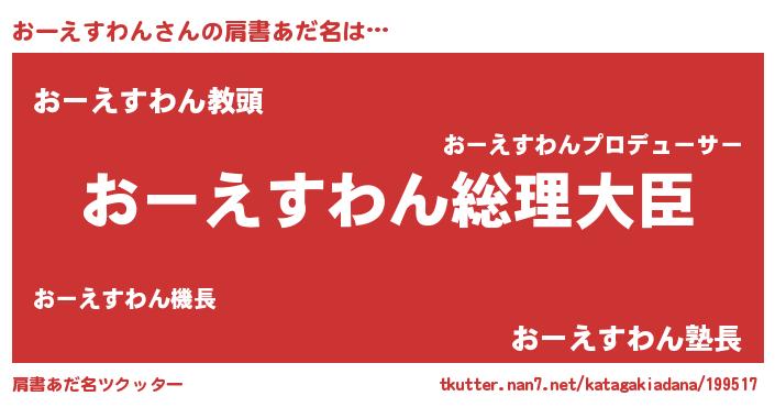 | 意味不明あだ名 | 『おーえすわんフォーエバー』 |