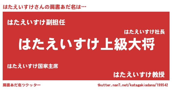 | 男性向けラノベタイトル風あだ名 | 『はたえいすけ~年齢イコール彼女いない歴の魔法使い~』 |