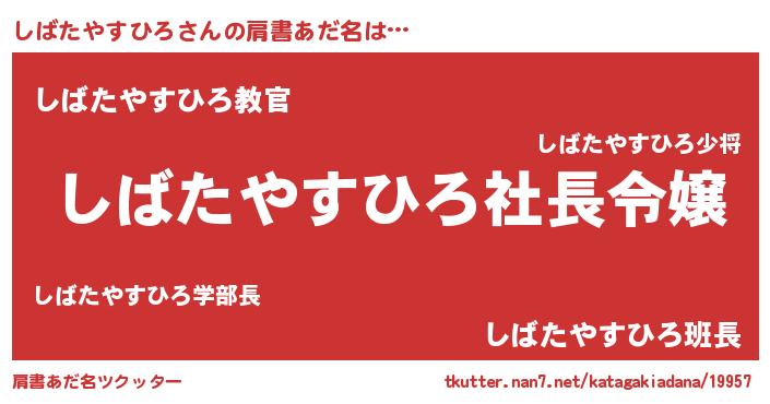 | 男性向けラノベタイトル風あだ名 | 『しばたやすひろの憂鬱』 |
