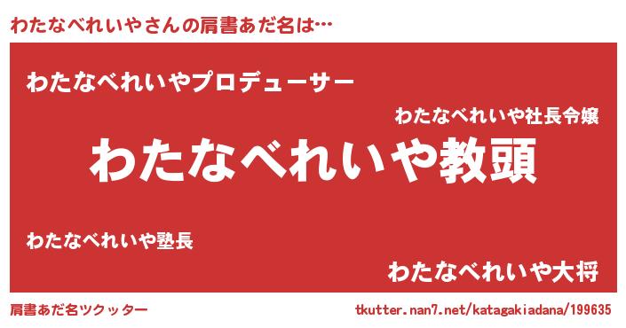 | 意味不明あだ名 | 『永久保存わたなべれいや』 |