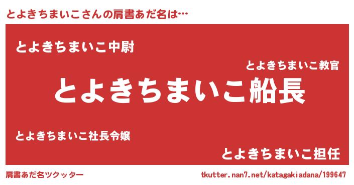 | 男性向けラノベタイトル風あだ名 | 『うちのとよきちまいこが世界を掌握している!』 |