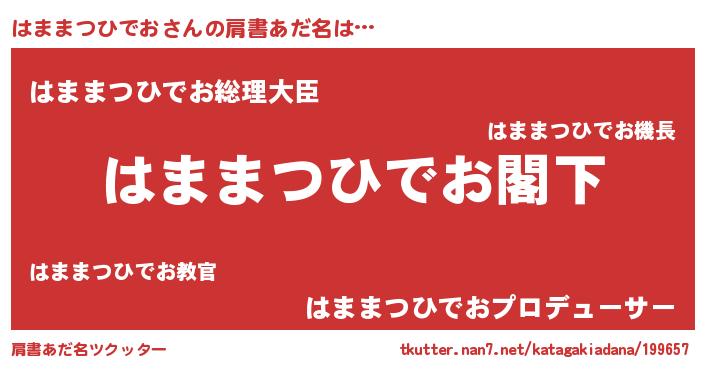 | 男性向けラノベタイトル風あだ名 | 『Re:はままつひでおから始める異世界生活』 |