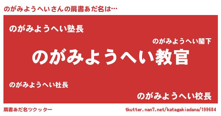 | 男性向けラノベタイトル風あだ名 | 『この素晴らしい世界にのがみようへいを!』 |